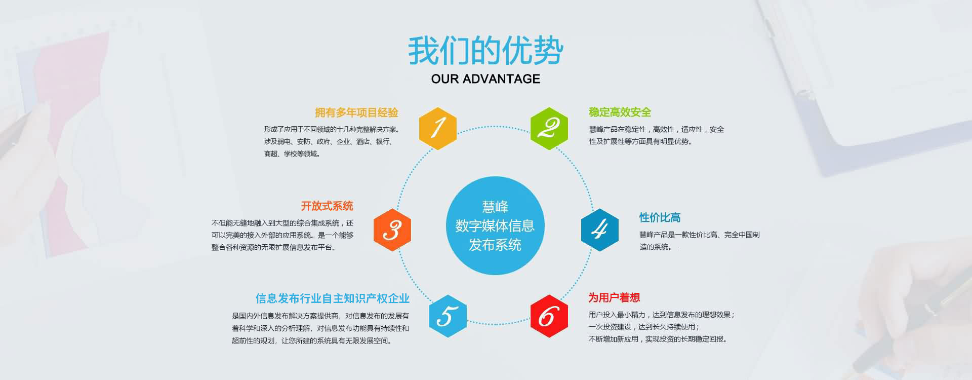 公司本著互惠互利,誠實信用的原則,真誠面對用戶,并愿與社會各界展開廣泛的合作。 公司現(xiàn)已是國內(nèi)的數(shù)字媒體信息發(fā)布系統(tǒng)解決方案提供商,產(chǎn)品涉及大中型企業(yè)、商業(yè)地產(chǎn)、各級黨政機關、軍隊、司法、信息通信、金融、醫(yī)療、教育、能源交通、公用事業(yè)領域。